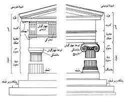 سطح بدنه ستون با شیارهای کم عمق عمودی به نام قاشقی ها تزیین شده است. در انتها بدنه با یک خط افقی معروف به گلوبند یا گلویی به سرستون متصل می شود. سرستون از بالشتگی و تاوه چهارگوش واقع بر روی آن تشکیل یافته است. اسپر از دو بخش اصلی دیگر مختلط تر و اجزا آن عبارتند از: فرسب (ردیف سنگ های صیقل خورده و افقی که مستقیما بر روی سرستون ها تکیه دارد) و افریز با سه ترکی ها و چهارگوشی های تزیینی اش و طره به صورت مثلثی درمی آید و با لبه برجسته به بیرون خود سطح سنتوری را احاطه می کند.