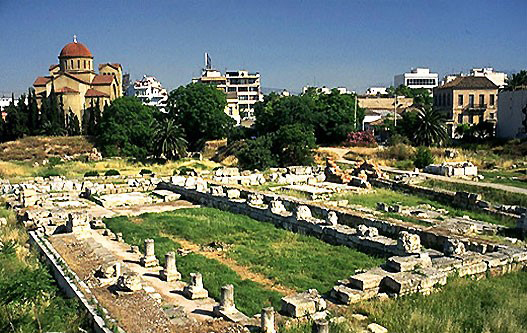 میدان عمومی شهر که نخستین بار در منطقه ای که به طور طبیعی چند خیابان به هم می رسیدند، شکل گرفت. این فضا یک فرم هندسی خاصی را دنبال نمی کرد، بلکه با گذشت زمان به شکل های منظم هندسی رسید. ساختمان های عمومی داخل این میدان ساخته می شدند. یکی از آنها فضای ستون دار و درازی بود که شهروندان و بازرگانان در آنجا مبادله کالا می کردند. آگوراها در سه دوره: 1- کلاسیک، 2- هلینسی و 3- رومی ساخته شده اند.