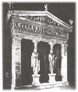 این بنا به شیوه ایونیک، در شهر دلفی و در سال 530 ق.م ساخته شده است. با آنکه این بنا هیچگونه ستون ایونیک ندارد و حمل و نگهداری سقف توسط ستون پیکره ها (کاریاتید ها) است ولی جزو سبک ایونیک محسوب می گردد. از ویژگی های متمایز و مشخص کننده دیگر بنا در شیوه ایونیک، کتیبه پیوسته ای است که به عنوان بخشی از یک اسپر سنگین دوره کهن است. چون ستون پیکره ها با آن جامه های زیبا و نیمرخ های بسیار مضرشان هیچگاه نمی توانستند در متن معماری دوریک با آن خطوط خشک و جسیم بگنجد.