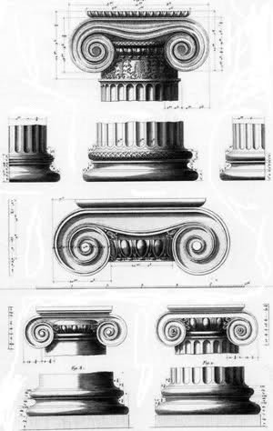 این شیوه معماری به سرزمین ایونیا واقع در ساحل آسیای صغیر منسوب بوده و کمتر از شیوه دوریک صلابت و استواری و رسمیت دارد. خاستگاه آن نیز همچون دوریک ناشناخته مانده است. نخستین بقایای معماری شیوه ایونیک از پرستشگاه هایی است که متعلق به قرن ششم ق.م است. از ویژگی های این شیوه ستون باریک و بلند با سرستونی پیچ خورده (حلزونی) است. طرح ستون این شیوه به بیننده از هر طرف دید مشابهی می دهد. نسبت ارتفاع به قاعده ستون در این شیوه 9 به 1 و 10 به 1 است. یعنی نسبت به ستون دوریک بلندتر است و تعداد شیارهای روی بدنه ستون نیز 24 عدد است. مهم‌ترین عنصری که شیوه ایونی را از نظام دوریسی مجزا می‌کند، تغییر شکل سرستون‌ها است. ستون سنگی در شیوه ایونی به جای اینکه مستقیماً روی سکوی پله دار قرار گیرد بر روی پایه ستون دایره شکلی که از سنگ یک پارچه تراشیده شده و دارای فرورفتگی‌هایی نیز می‌باشد، قرار می‌گیرد. این سنگ حجاری شده روی یک لوحه سنگی مربع شکل قرار دارد که به این نوع پایه ستون در شیوه ایونی توروس گفته می‌شود. معابد بسیاری در یونان و سرزمین‌های تابعه آن به شیوه ایونی بر پا شده‌اند که می‌توان به معبد آرتمیس درشهر افسوس اشاره کرد.